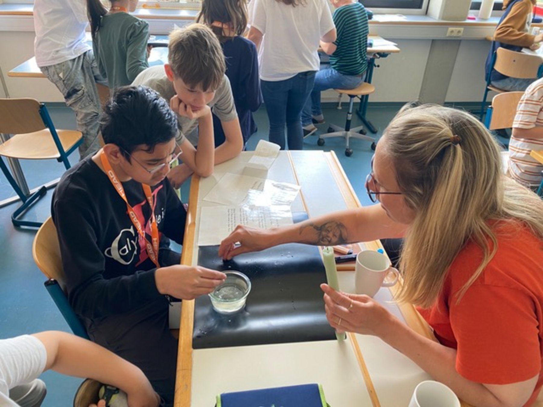 Am 16. Mai hat unsere Schule zum ersten Mal seit der Pandemie wieder einen offenen Lese-Tag veranstaltet! Dieser stand unter dem Thema „Wasser“. In fast allen Klassenräumen waren Stationen vorbereitet zu verschiedensten Aspekten dieses tollen Themas. Es war für alle Schülerinnen und Schüler von Groß bis Klein etwas dabei: vom Zeichen-Atelier über Meerestiere, See- und Teichbewohner, Experimente mit Wasser bis hin zur Reise eines Wassertropfens von der Quelle bis ins Meer. Die Kinder haben es sichtlich genossen, sich frei mit ihren Freundinnen und Freunden aus anderen Klassen durch das Schulhaus zu bewegen. Natürlich durfte auch der bewährte Stempelpass nicht fehlen – am Ende hatten alle Kinder viele Stempel gesammelt und waren um einige Erfahrungen und Begegnungen innerhalb unseres sehr vielfältigen Schulhauses reicher!
